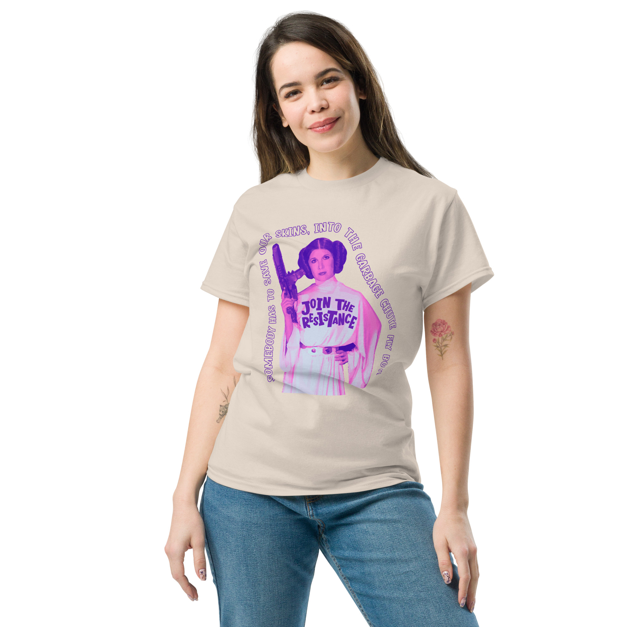 The 100% cotton unisex classic tee will help you land a more structured look. It sits nicely, maintains sharp lines around the edges, and goes perfectly with layered streetwear outfits. Plus, it’s extra trendy now!